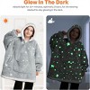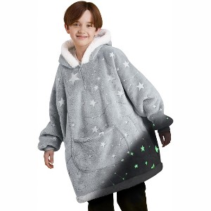 This is a genuine glow-in-the-dark oversized blanket hoodie for kids. The hooded blanket features glow-in-the-dark designs such as dinosaurs, stars, and unicorns, and is designed for customers who seek softness. Comfortable and cozy, it's an essential item for enjoying leisure time. It's perfect for lounging around at home, watching TV, playing games, reading, taking a nap, or any camping or outdoor activities. Available in a variety of designs, this super soft, wearable blanket for kids is the perfect gift for boys and girls on birthday, Thanksgiving, Christmas, and more.
