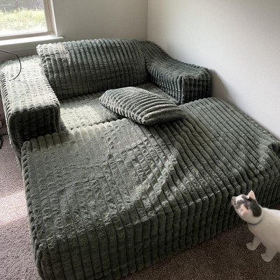 We’ve been looking for a couch/chair in this style to use as a reading chair and quickly fell down the rabbit hole of factory produced foam couches (I’m sure you’ve seen these things all over social media). They all seemed the same but were being sold at different prices by different companies. We finally settled on this one from Target because it was A) the color I wanted, and B) had a separate ottoman instead of it being one long couch. It arrived on time and in one box (it was VERY HEAVY so be aware). Since it’s foam it was all vacuum sealed into one bag, but it blew up pretty quickly. Sitting in it, it feels very sturdy and supportive, the foam is very dense. I really like the texture, it’s very soft and fluffy. Overall, very happy with this purchase so if you’re looking for this trending couch, you can feel confident choosing this one. Photos are of the product in the box, the product right after opening, and after 72 hours (the recommended time to let it finish taking shape).