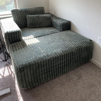 GDFStudio Valerie 62.5" D Corduroy Oversized Armchair, Upholstered Single Sofa Lounge Chair with Ottoman, Black