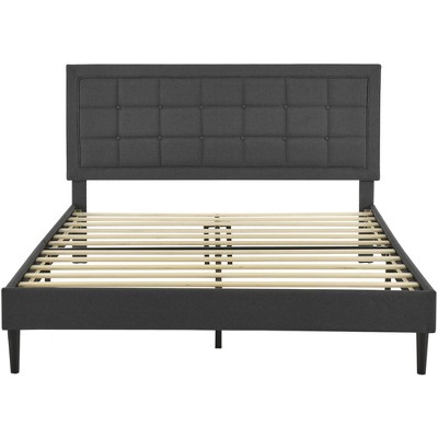 DeCoro Mornington Upholstered Wooden Platform Bed Frame with Headboard and Wood Frame with Wood Slat Support, Full, Dark Grey