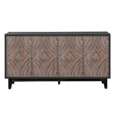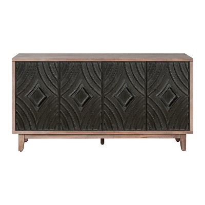 Transform your living space with the Mid Century Sideboard Buffet Cabinet, a perfect blend of style and functionality. This exquisite cabinet features a stunning antique black finish and unique fluted patterned doors that bring a touch of sophistication to any room. Measuring 60" W x 15.6" D x 32.28" H, it provides ample storage with four spacious doors and two interior shelves to accommodate all your essentials. Whether used in your kitchen as a buffet cabinet, or as a console table in your entrance hall, this versatile piece not only meets your practical needs but also elevates your home decor. Crafted from high-quality engineered wood and solid wood, this sideboard ensures durability and stability for years to come.