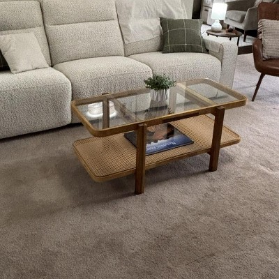 This coffee side table is wonderful! It makes it easy to keep my essentials nearby. The rattan and glass combination is lovely. My kids were excited to help me place it.