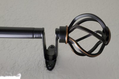 [This review was collected as part of a promotion.] I got this curtain rod to replace the one we had on our sliding door in our bedroom. I really like that it mounts closer to the wall for less gapping at the top. The smaller the gap, the less light that comes in along the top. During the summer time the door gets a lot of sun most of the day, the blackout curtains and narrower gap from the rod makes it less likely to run up our cooling bill. I love the open cage ball design, it matches our lamp perfectly.