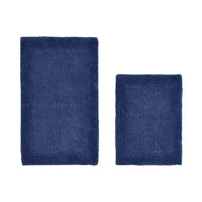 Better Trends Hotel Multi 100% Cotton Tufted Two Tone Reversible Bath Rug Set 2 PC (17" x 24" | 21" x 34") - Blue/White