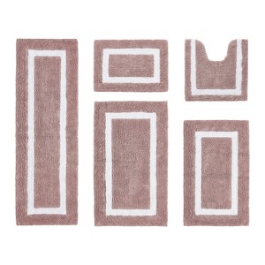 Hotel Bath Rug 100% Premium Cotton Tufted Weave Two Tone Reversible 5 Piece Bathroom Rug Set, Super Soft & Water Absorbent, Machine Washable Bathmat - 1 of 4