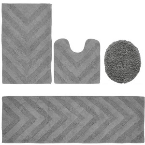 Hugo 4-Piece Bath Rug Set 100% Premium Cotton Tufted Chevron Pattern Bathmats for Bathroom, Super Soft Absorbent Machine Washable Floor Bathmat - 1 of 2