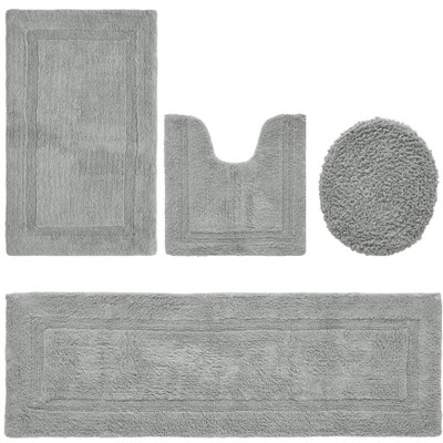 Better Trends Hugo 100% Cotton Tufted Non-Slip Backing Bath Rug Set 4 PC (18" x 20" | 20" x 20" | 21" x 34" | 20" x 60") - Gray