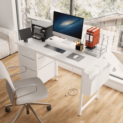 - 【Ample Storage Space】Featuring 3 spacious drawers and a side pocket, this desk offers ample storage space for organizing papers, stationery, devices, and other essentials. Keep your workspace clutter-free and everything within reach.