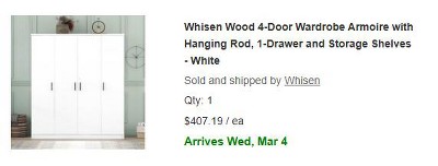 My order for this wardrobe was confirmed at $407.19, but the seller later canceled it claiming there was an issue with my address. My address is perfectly valid and has been used for many deliveries without any issues. Now the same item is listed for $508.99. It’s difficult not to see this as the seller canceling orders simply because the price went up. If you can’t afford to honor the price you list, don’t list it. Customers shouldn’t have their orders canceled just because the seller regrets the price.