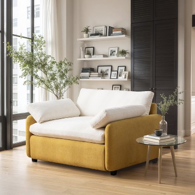 Modern Oversized Chenille Accent Chair with Color-Blocking Design & Pillows, Comfy Armchair Single Sofa, Yellow+Cream - ModernLuxe