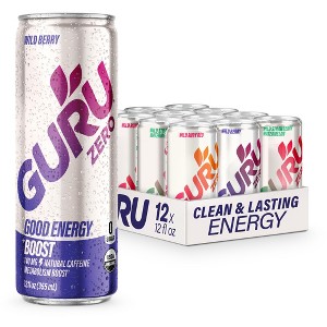 GURU ZERO SUGAR VARIETY PACK ORGANIC ENERGY DRINK, 12OZ, PK OF 12 CANS, VARIOUS FLAVORS