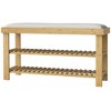 HOMCOM 3-Tier Bamboo Shoe Bench, Entryway Bench with Storage and Cushion, Shoe Organizer for Entryway, Hallway