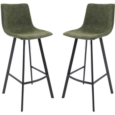 Product Name: LeisureMod Upholstered Bar Stool in Leather with Iron Legs Elland Collection Set of 2 in Olive Green