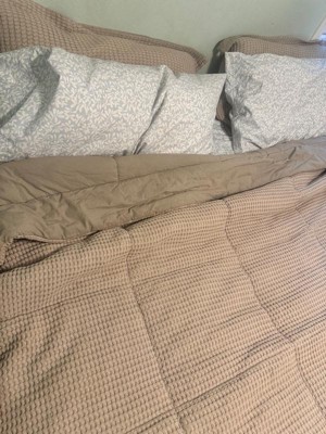 [This review was collected as part of a promotion.] Right out of the bag, I could tell that this was a high quality comforter! I love that it’s available in neutral colors, but the waffle texture adds interest. The inner lining is smooth, and the material is warm yet breathable. I ordered the king size for my queen bed, and it fits well. I also really like the two decorative pillowcases that came with the comforter. This is a set that I know I will continue to enjoy for a long time!