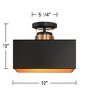 Upgrade your living room lighting with the warmth and sophistication of this modern two-light semi-flushmount ceiling light. From Possini Euro Design®, it features a square shade silhouette with a black outer finish, creating contrast and depth. Gold finish accents and inner shade add impeccable character and elegance.