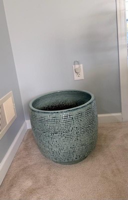 [This review was collected as part of a promotion.] This ceramic planter is absolutely stunning! The soft teal glaze with its textured finish adds so much character and elegance to my space. It’s beautifully crafted, sturdy, and has a nice glossy sheen that catches the light perfectly. The size is ideal for a large indoor plant or even as a decorative accent piece. It instantly elevates the corner of my room — definitely a high-quality and stylish addition to my home décor!