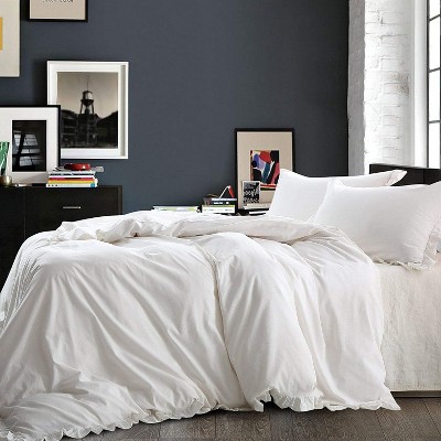 3 Piece Linen Duvet Cover Set, Bedding Set with Exquisite Ruffles Design, Ivory - NTBAY