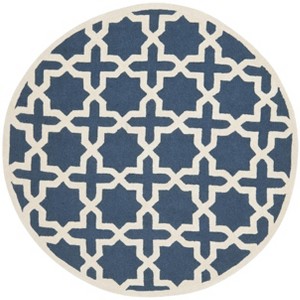 Celebrate artisanal craft, indulge in luxurious wool, and let this 8'x8' Round Navy Blue/Ivory area rug elevate your home with its impeccable style and quality.