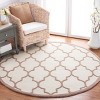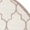 Boasting a plush pile height of 3/8 inch, the rug offers a soft underfoot experience without compromising on durability. The round shape and serene ivory and beige color palette create a calm and inviting atmosphere that complements any decor style.