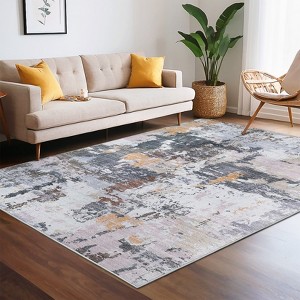 Modern Abstract Area Rug Low Pile Non-Slip Accent Rug for Living Room Bedroom