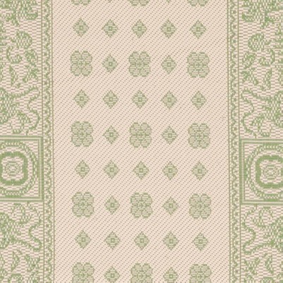 The serene natural base of the rug is intricately adorned with olive accents, featuring a sophisticated pattern that combines classic medallions and ornamental borders. This design creates a harmonious balance, making it a versatile addition to any indoor or outdoor setting. Our rug's pattern is expertly power-loomed in Turkey, offering a high-quality finish that withstands the elements and the demands of high-traffic areas.