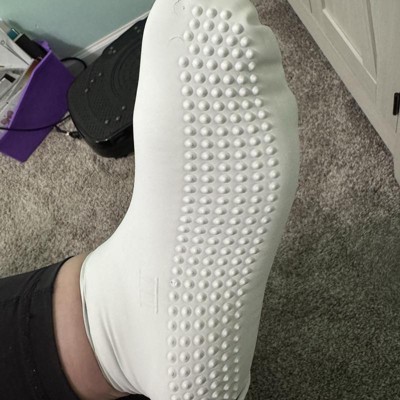 I was super excited to try these late fin socks in a size large I wear a size 7 in women’s and felt like these were a little tough to get on, but once I had them on, they were comfortable and would easily prevent blisters and help to protect my feet overall they are stretchy and material but also super tight once you have them on your feet I have larger ankles and you can see here that they were a little snug around the top of the ankle overall, I highly recommend these they are well-made I received an incentive to write this review.
