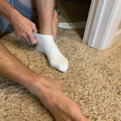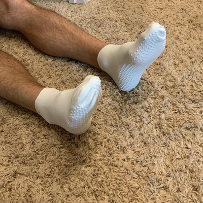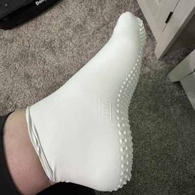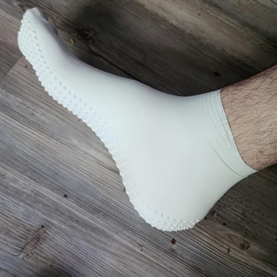 I was super excited to try these late fin socks in a size large I wear a size 7 in women’s and felt like these were a little tough to get on, but once I had them on, they were comfortable and would easily prevent blisters and help to protect my feet overall they are stretchy and material but also super tight once you have them on your feet I have larger ankles and you can see here that they were a little snug around the top of the ankle overall, I highly recommend these they are well-made I received an incentive to write this review.