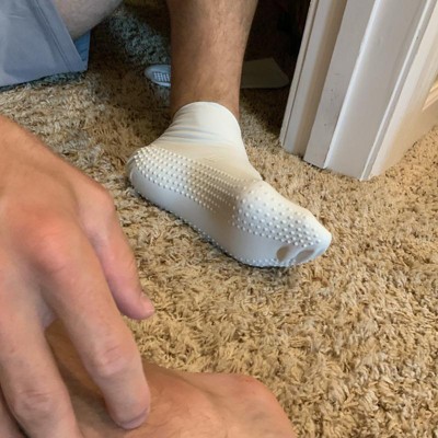 Note: The foot pocket hole runs small, be careful to not tear when putting on.