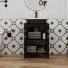 Stylish Elegance: Enhance your bathroom with the sleek and sophisticated black freestanding cabinet.