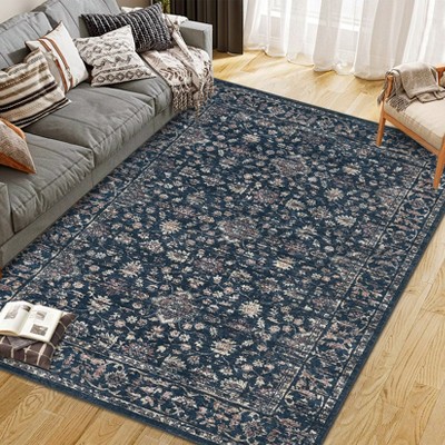 Area Rug 8'x10' Indoor Vintage Living Room Carpet Washable Distressed Rug Black Floral Bedroom Rug Retro Accent Throw Rug Office Dining Room Nursery