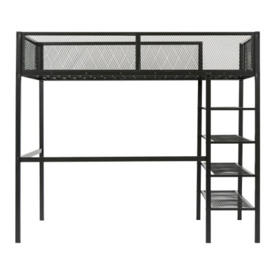 This twin size metal loft bed with storage space is made with sturdy metal and has a clean-cut silhouette that can be matched with any room decoration. It has 4-tier open shelves and a storage shelf beside the bed guardrail. It is easy for you to pick up things without getting out of the bed. With this collection, you can turn any space into a workstation, a reading nook or a lounge area.