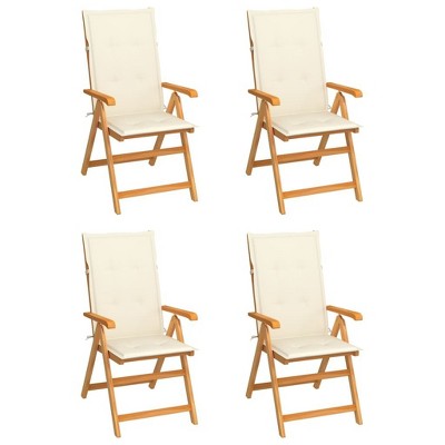 Costway Outdoor Folding Chairs Set of 4 Acacia Wood High-Back Chair with Seat Cushions Beige