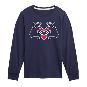 Boys' - Instant Message - Valentine's Day Hand Heart Game Controller Long Sleeve Graphic T-Shirt - 1 of 4