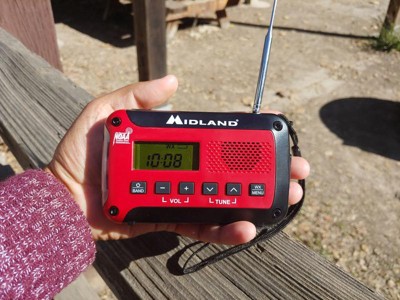 I really like the concept of the Midland ER10VP. We travel the U.S. full time in our RV and so are not always familiar with local weather situations to look out for. I do have an app on my phone that will alert me to severe weather conditions, but the problem with that is that we are frequently out of cell range when we camp in the back country and so have the potential of being caught in a bad situation. This is my first time trying out a little emergency hand held radio like this one, and I like how small it is - living full time in an RV we really need to prioritize space efficiency. I like how simple and basic the functions are, and how easy it was to set up. From reading other reviews I understand that some features have been removed in order to keep this model as small as possible, however, I would prefer that the radio had some other charging options other than only being able to be powered by battery. I’d take a larger radio if we could charge it via crank or solar or USB. I will be purchasing some rechargeable batteries to accomplish this. We’ve had the radio for about 3 weeks now and the batteries are already flashing the low battery signal, and the radio has been on standby the entire time, we have not used the radio or the flashlight at all. We’ve been enjoying sunny California this month and have not had any weather emergencies yet, so we don’t know how the radio will alert us. We do have dogs and I worry if something happens while we happen to be away from the RV, if the strobe light and alarm sounds will cause our dogs to go into a panic, so I try to remember to turn off the weather alert function when the dogs will be by themselves. Overall, my recommendation is that this emergency radio would best suit backpackers or campers going on shorter trips, who need to keep weight and equipment down to a minimum, and for whom the batteries will last their whole trip.