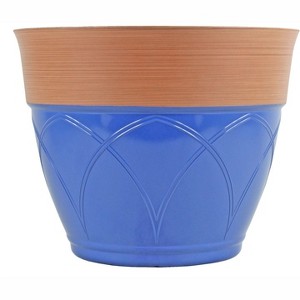 Product Name: Garden Elements Outdoor Lightweight Plastic Colored Rim Planter, Blue, 15"