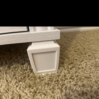 I did not expect this quality. To my surprise while putting the furniture together, many pieces were made with wrapped cardboard (e.g where the drawer pulls screw in!), the back is literally cardboard and it was missing all drawer pulls. The particle wood wrapped with plastic wood like by nil material that was missing in corners and on other pieces it was uneven. The pieces that hold together the drawers were plastic and a couple broke when screwing them to the wood. I followed the instructions and recommendations, didn’t use a drill and carefully put every piece together specially once I realized the quality of the item. Even the foot pieces are plastic! It would’ve been the perfect dresser of the quality wasn’t the worse I’ve ever seen.