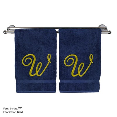 BC BARE COTTON Monogrammed Washcloth Towel, 13x13 Inches - Set of 2 - Embroidered Towel - Navy Blue - Gold Script - M