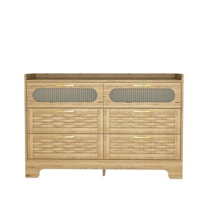 GDFStudio Rosalind Farmhouse 47.24" W Gold Handles Wood Horizontal/Double Dresser with Six Drawers