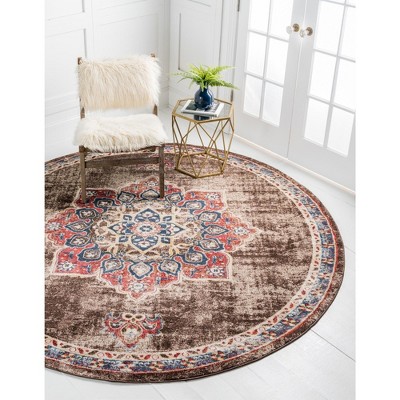 Unique Loom Trellis Collection Area Rug - Philadelphia (8' Round Chocolate Brown/Beige)