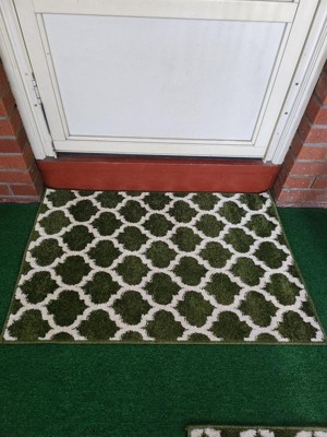 This works perfectly in the entry stairway of my home. The stairs are green, so I wanted to be extra clashy and match that green. But in all seriousness, it looks just as I expected, fits perfectly, and is of good quality, especially for the price. Am just waiting for it to "unflap," so to speak by putting heavier objects on the corners - but of course this would also be expected! This was my first time ordering from Rugs.com and I would definitely do so again. I also purchased two small doorway mats & love them both. Didn't want to splurge until I was sure I was satisfied with the quality of their rugs, which I am. One happy customer over here :)