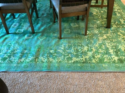 I was worried about buying such a brightly colored rug without seeing it in person but it is exactly what I was looking for! I have been trying to find something to go with my tropical decor but most greens are too olive, this one is vibrant and beautiful! It feels very nice with the rug pad under it and I’m excited that I can wash it if my dog decides to pee on it.