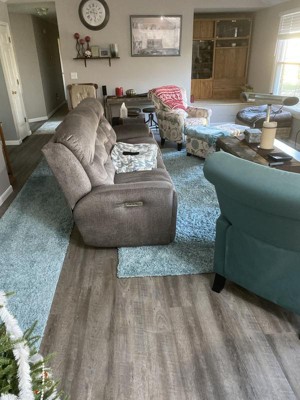 This rug looks great with our new flooring and compliments our furniture