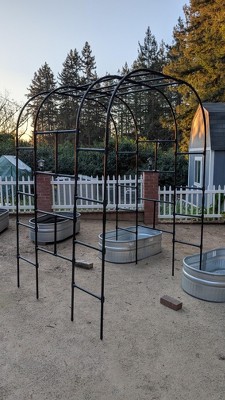 I am glad I only paid the clearance price for this ($76). I was expecting a more heavy duty trellis, but it is partially plastic. It is a very thin metal with a plastic coating and the joints are plastic. I was able to put it together by the myself, but it was a struggle to snap the pieces together. The instructional pictures don't match the pieces given. It comes with a bunch of green string that I'm not sure what to do with. Overall, it is a good size and looks nice and I will be able to make it work for my garden.