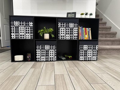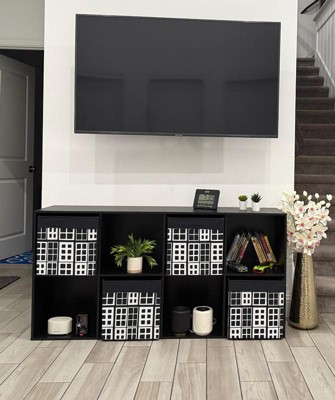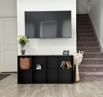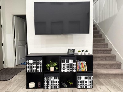 [This review was collected as part of a promotion.] The design is sleek and modern with a sturdy black finish that fits perfectly in my living room. I love that it's customizable, the removable panels make it easy to switch up the look and fit of my decor. The 8 cubes provide ample storage for books, decor and other knacks. Assembly was straightforward. I love how versatile it is, it can be used in a living room, and bedroom or an office.