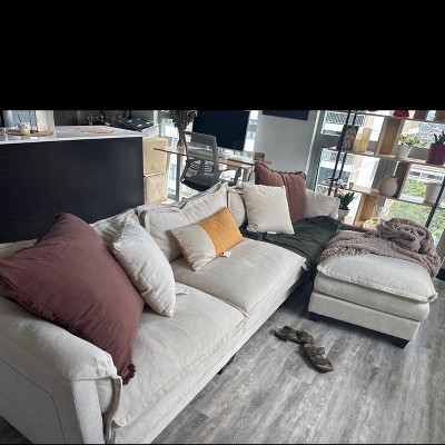 4 Seat Modular Sectional Sofa, L Shaped Cloud Sofa Couch Set, Upholstered Oversized Sofa Chair with Movable Ottoman, Cream -ModernLuxe