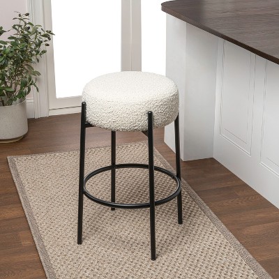 JONATHAN Y Paola Modern Minimalist Round Backless Metal/Vegan Leather Cushioned Bar Stool