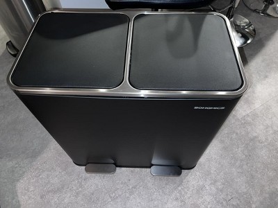 This item deserves more reviews! My old trash bin had its day so I was in the market for a good replacement where I could also separate recycling, but didn’t want to downsize the regular garbage side. This trash can is large enough for both (13.2 gallon bags fit on each side) without compromise. The black/stainless combo looks sharp. Soft close lids are nice to have. Comes with 15 free bags as well. Arrived quickly and packaged with care.