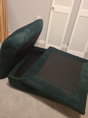 just be aware that the cushion on top is not attached to the lid of the Ottoman, it's just a pillow that rest on top of the particle board lid. so it can get knocked off very easily. otherwise its pretty big and has soft fabric