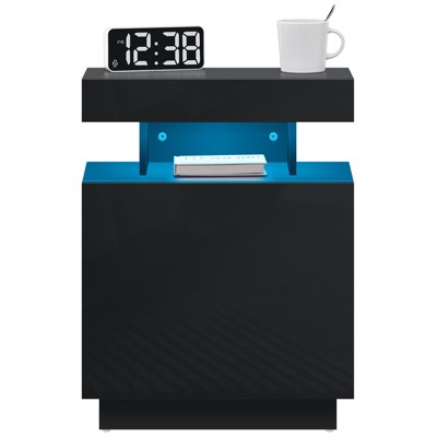 Upgrade your bedroom with this sleek and modern black nightstand featuring dynamic RGB LED lights! With both APP and remote control options, you can easily adjust the light color, brightness, and effects (Multicolor, Flash, Music, Mix, Timing) to create the perfect ambiance at any time.
