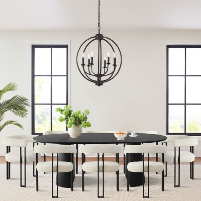 LeisureMod Ravenna 7-pc Dining Set, 63" Rectangular Table and 6 Ervilla Chairs in Ebony-Beige
